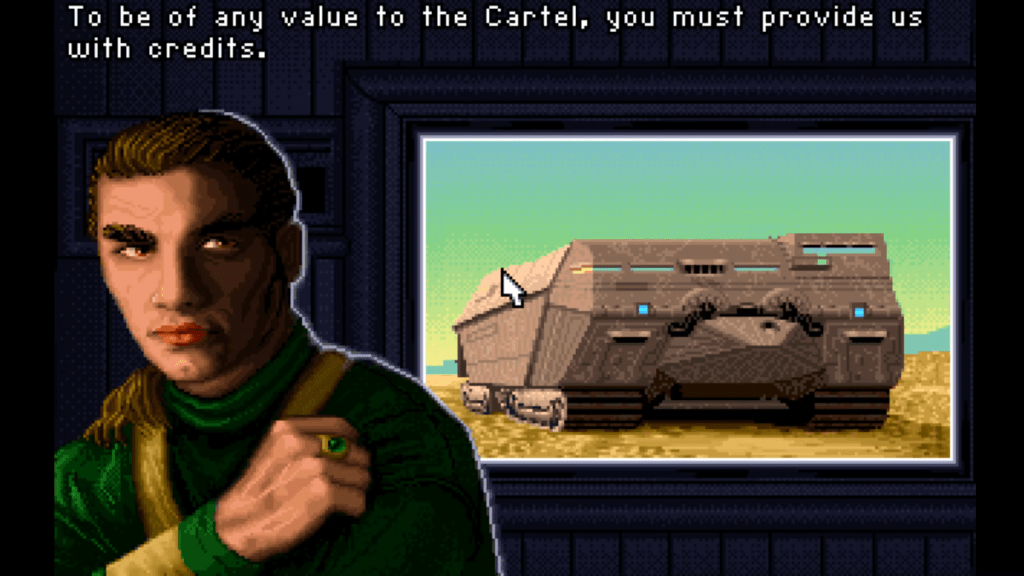 Dune II: The Building of a Dynasty (1992) by Westwood Studios and published by Virgin Games for DOS, Amiga, and Genesis. The first Real-Time-Strategy game is generally credited to Herzog Zwei for Genesis, which served as inspiration for this game, a sort of continuation of Frank Herbert’s seminal novel. While this doesn’t have *much* of a plot, it lifts the world and concepts, with the developers believing that the most interesting role the player could have was in managing the industry of the all-important spice rather than engaging in bouts of political intrigue. You choose from one of three factions, the noble Atreides, the tricky Ordos, or the ruthless Harkonnen, then are tasked by your advisor to complete various missions involving a quota of profit from your spice harvesting endeavors. This was the first game to focus on gathering resources to create units, technology trees, and even the basic user interface which would become staples of the genre. The actual gameplay is pretty engrossing; your win condition is tied to your profits, but you need to spend to build structures and produce units to protect them. There’s a constant back-and-forth until you breathe a sigh of relief as you hit your quota. Enemy bases pose an ever-increasing threat the further you delve into the missions, and if you aren’t prepared for an attack, you will get wiped out in no time. There’s a fairly extensive set of buildings and units to produce to generate power, process spice, train soldiers, and store your resources lest you leave some to waste. Overall, this game has aged pretty well, and doesn’t even suffer from the awkward camera controls that many overhead titles from this era fall victim to. If you’re a fan of Dune, or even just RTS games, this is a cool piece of history.