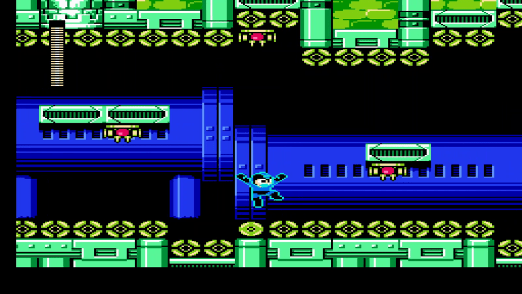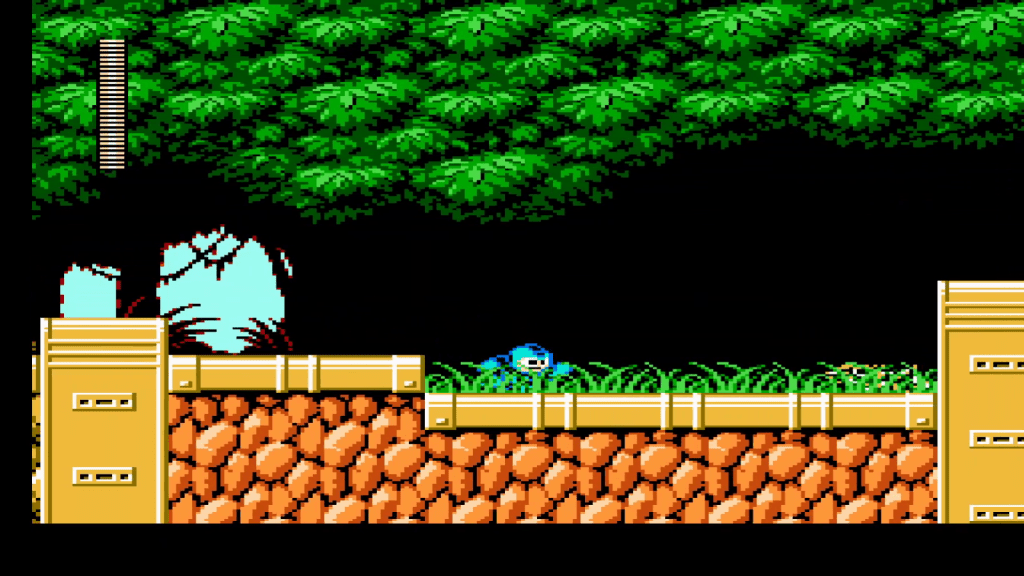 I bring this up only because there’s this part at the start of Plant Man’s stage I don’t like, because it kinda breaks this rule. See, there’s these little grasshopper enemies who stay low to the ground where your Mega Buster can’t hit unless it’s fully charged, and then they jump forward to attack you. The grasshoppers can hide behind the tall grass in some parts of the level, where they’re barely visible. For some reason, the first time you see the grasshopper will be when it’s already flying in your face, as it’s hidden behind the grass. Instead of first introducing the idea of the grass and grasshopper separately, it’s served to you hot and ready. It’s weird and I don’t like it.