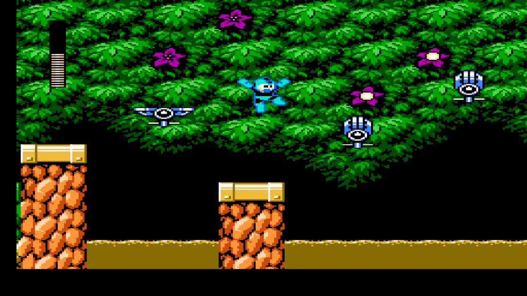 Ugh. I wanna move on. Though there is this cute bit where they put the small health pickups in the trees over these flowers, so it looks like they’re little fruit. I like that, that’s very Megaman to me.