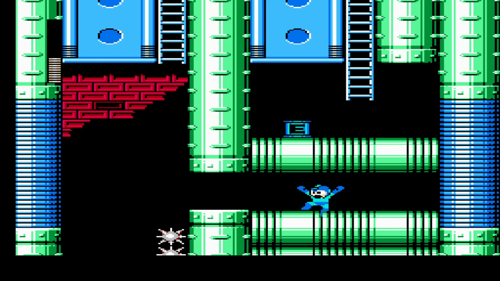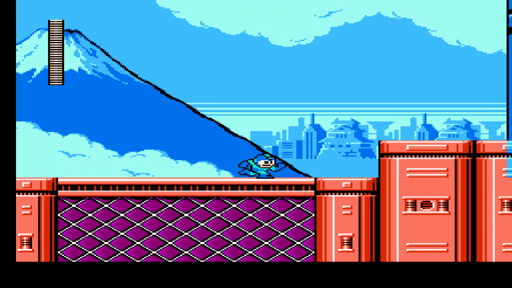 All the way back in 1987, in the first entry, if you stand still for a few seconds, Megaman blinks. That might not seem like it means much, but you have to understand how they did this. Sprites on the NES could only consist of four colors; Megaman’s body is a light blue and dark blue, and his face is made of beige, white, and black. Huh? How did they get that many colors? Noboyuki Matsushima, who programmed the graphics, actually used two different sprites for Megaman’s character. The body and face are separate, which is sometimes visible when they flash at different intervals after being hit. They could have just simplified the design, but that would detract from the character of Megaman. Despite being a robot who never speaks during gameplay, he has a surprising amount of personality; his iconic headfirst run, full of determination, the way he grimaces in pain when taking damage, the fact that he blinks.