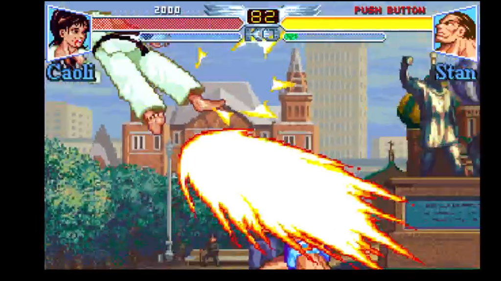 Tough Guy (1995) developed and published by Panda Entertainment Technology for DOS. It’s a fighting game, on DOS, and it’s called Tough Guy! How could I not check it out? It’s… good? Maybe? Tough Guy is clearly trying to fill the fighting game hole that existed (and, to be frank, still exists) on home computers. It apes the formulas of Street Fighter and SNK to a T– an international cast, fantastical special moves, and heck, even the UI looks pretty similar. The friction really lies in the controls, which is one thing that really needed to be adapted for keyboards. Instead of a WASD or arrow key set up, it mimics an arcade stick, using 8 directions mapped to the E, R, T, D, G, C, V, and B keys. If that sounds like a lot, it is, although thankfully the developers didn’t seem to implement standard motion inputs for specials, opting for a Smash Bros. style tilt system. All the basic hallmarks of a fighting game are here, though. If you practiced enough (or remapped the buttons in DOSBox), you could do mix-ups and combos like it was King of Fighters, although the option to grab seems missing, but that may have been the lack of information, as it is entirely in Taiwanese save for a few things like character and location names, for some reason. It’s worth noting that it has a good amount of polish for the era, the music is pretty catchy and the spritework and backgrounds are well detailed with strong animations. This isn’t a terrible game by any means, I just don’t know why you’d put time into it when there are any number of other classic fighters with bigger rosters and more community resources. There is one great thing to come out of this game, and I won’t lie, it’s Madiesha.